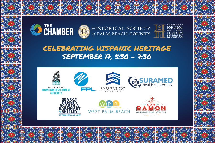 Celebrate the opening of Profiles of Impact: Avanzando Hispanic Business Leaders in Palm BeachCounty with a reception at the Richard and Pat Johnson Palm Beach County History Museum, presented in partnership with the Chamber of Commerce of the Palm Beaches.